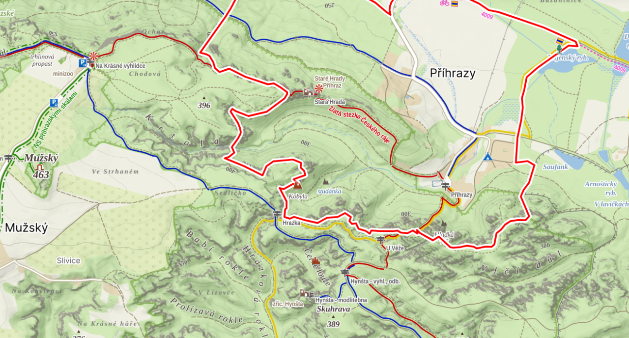 3. den: turistika v Příhrazských skalách - Staré Hrady, Krásná vyhlídka, zřícenina hradu Hynšta, Obětní kámen